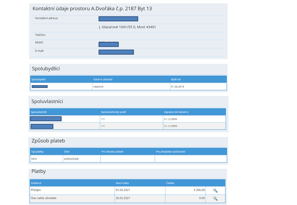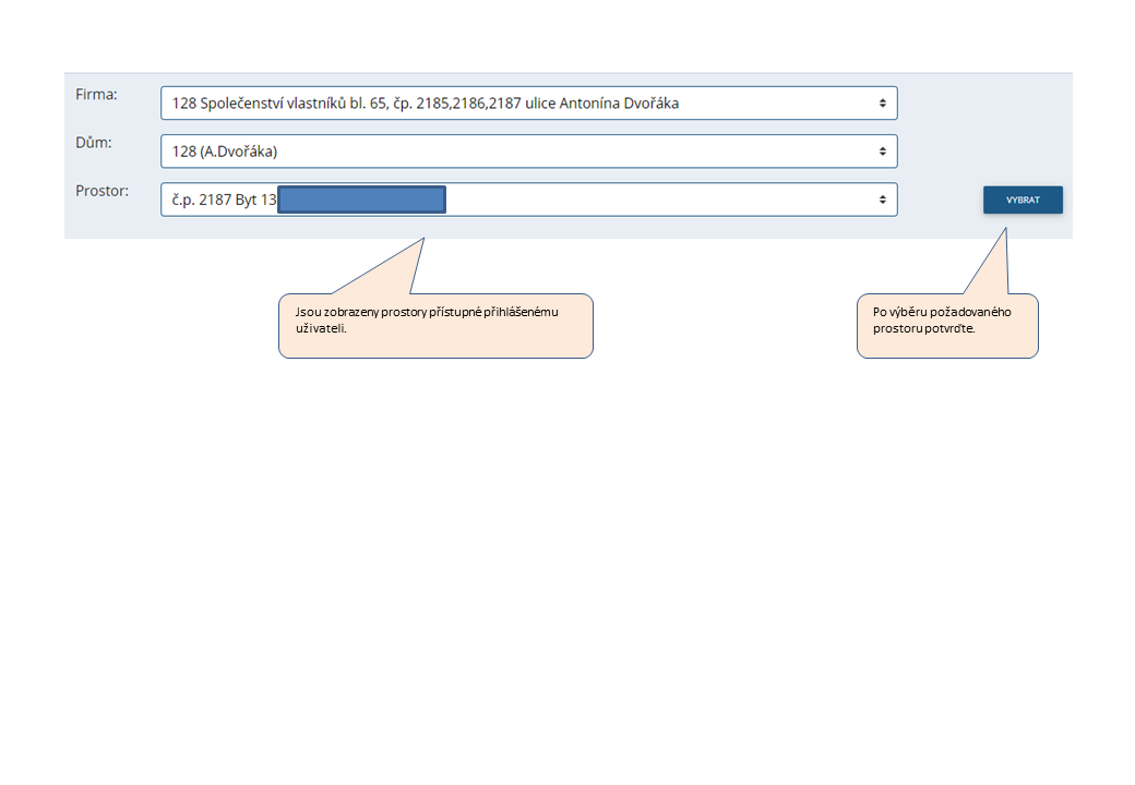Zobrazování údajů evidovaných Správcem o domech a prostorech, ke kterým má přihlášený uživatel nastaven přístup.