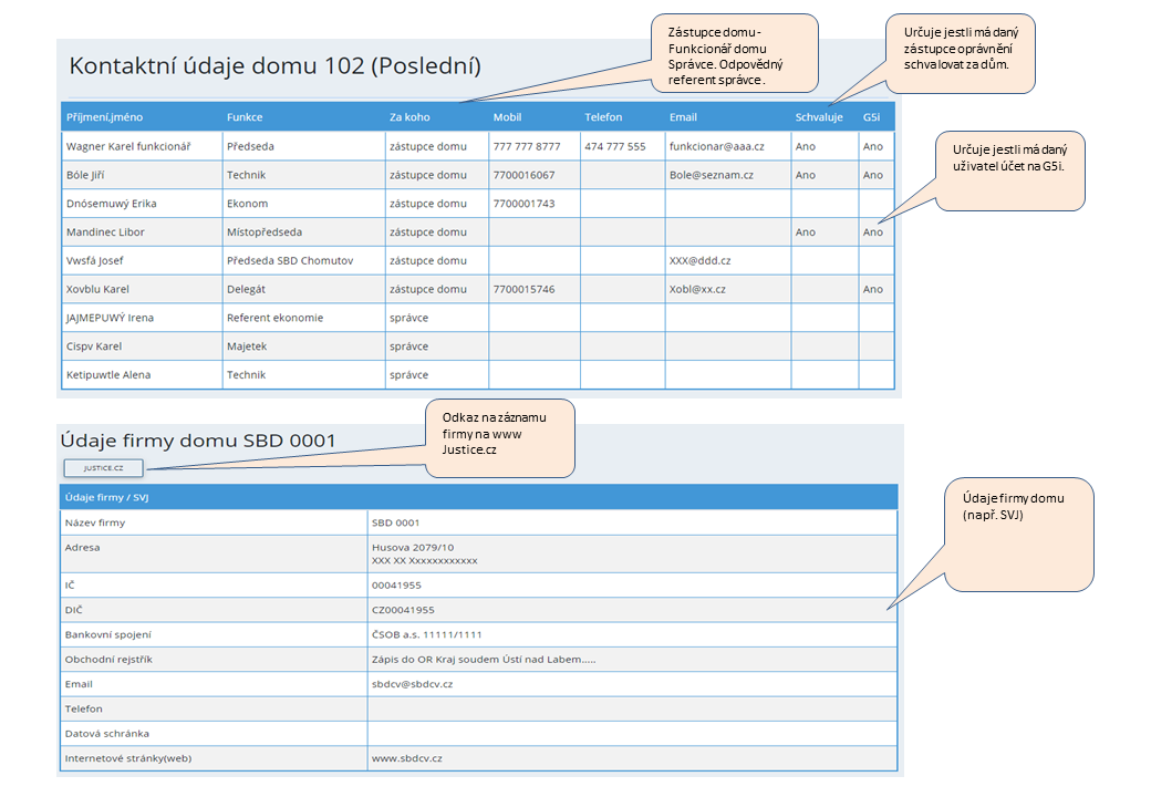 Údaje sloužící správci případně funkcionářům domu, aby Vás mohli kontaktovat v případě potřeby.