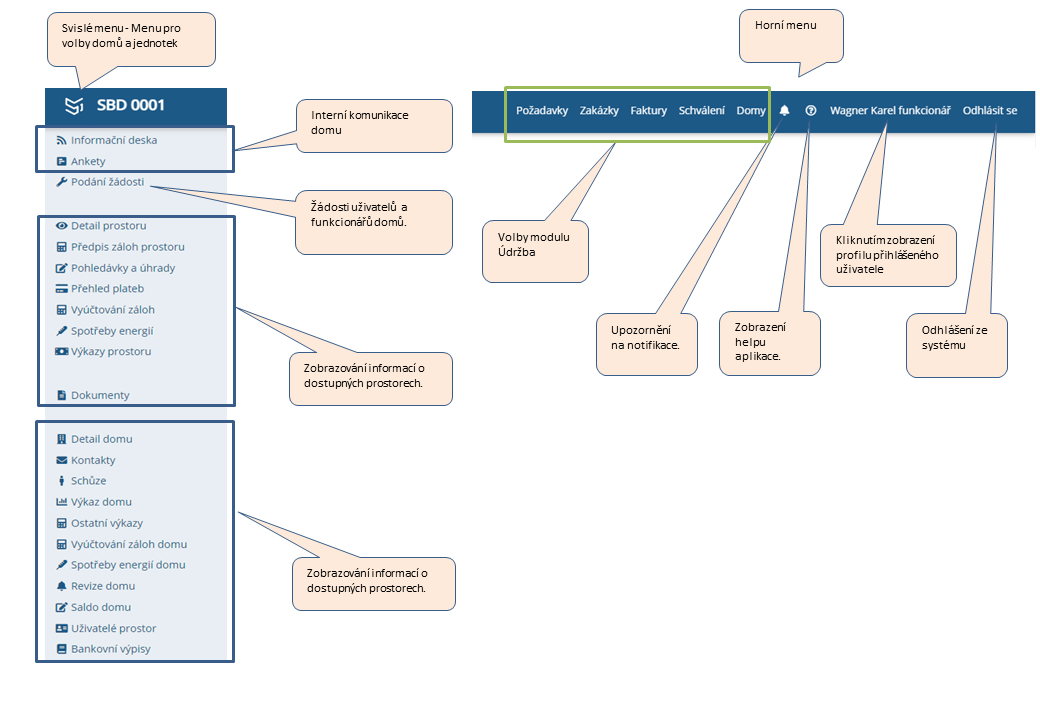 Zástupci domů mohou prostřednictvím aplikace vyřizovat požadavky na údržbu domů se sledování stavu vyřízení tohoto požadavku Sprácem a dodavatelem.