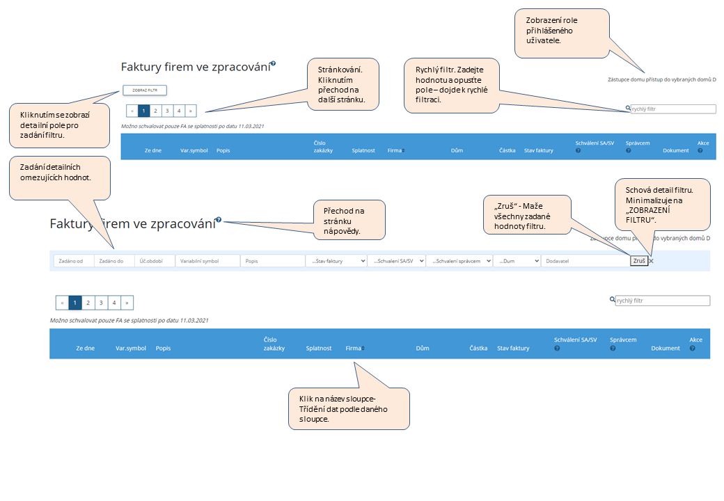 Dovoluje Zástupům domů schvalovat dokumenty a požadavky zaevidované Správcem nebo uživateli prostor (např. faktury, požadavky na údržbu a pod.)