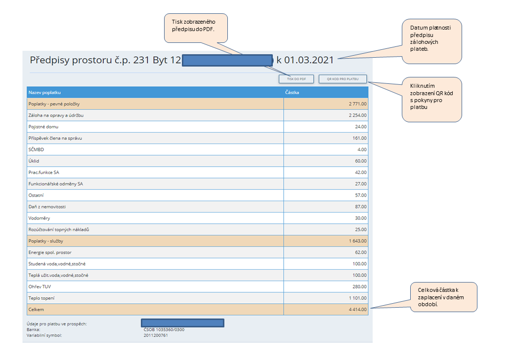 Tiskne formulář s předpisem aktuální měsíční platby.