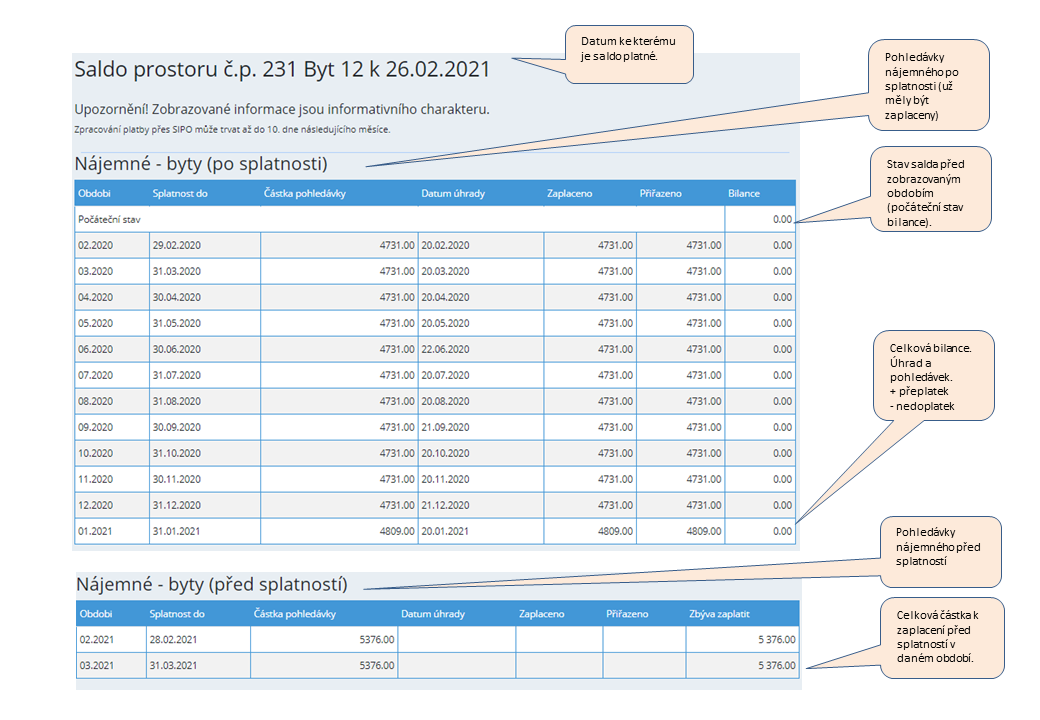 Saldo je vyčísleno z posledních 12 pohledávek a příslušných úhrad k aktuálnímu datu.