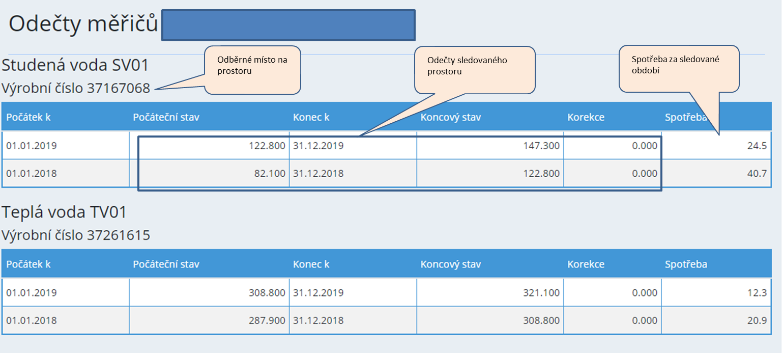 Výkaz domu je ve formě PDF souboru vždy vytvořen pro zadané období a může obsahovat udáje o:
