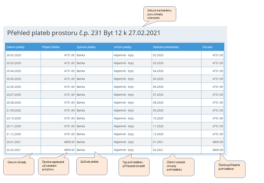 Volba zobrazuje Váši aktuální měsíční platbu za užívání nastaveného prostoru.