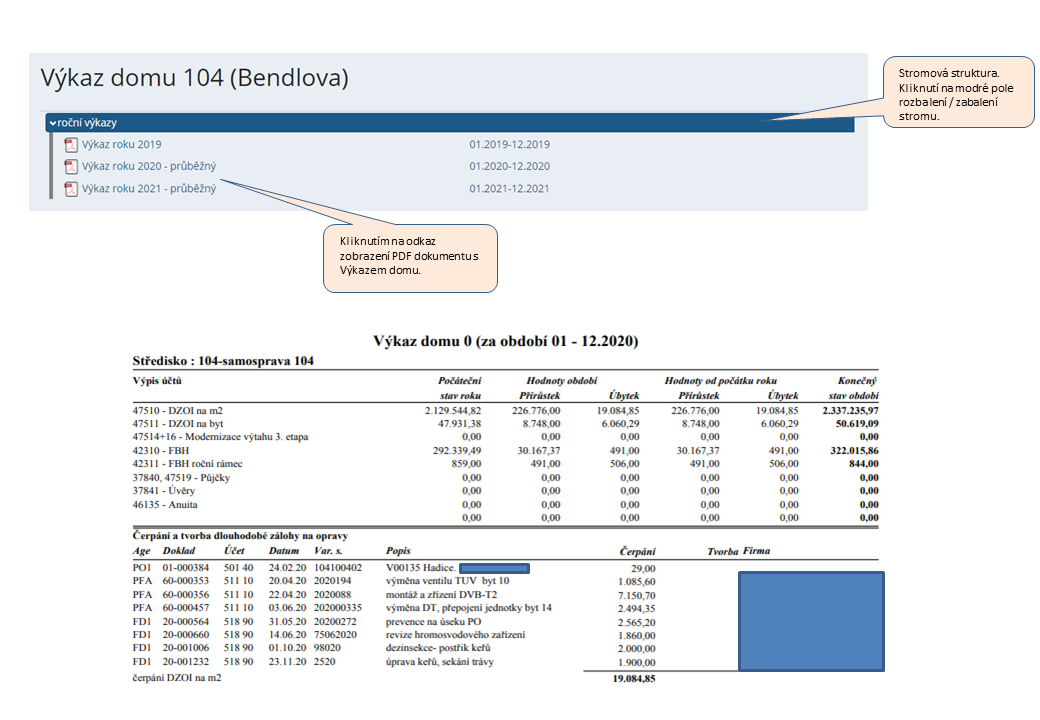 Výkaz domu slouží k prezentaci ekonomických údajů souvisejících s hospodařením domu.